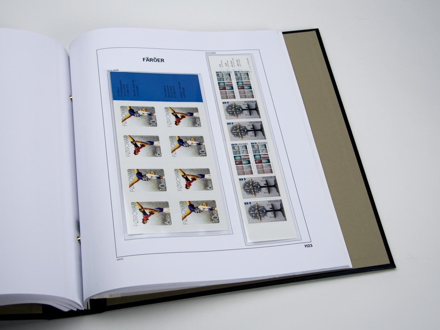 Les suppléments avec feuilles préimprimées de Davo, de type DeLuxe, sont fabriquées en carton particulièrement solide, sans bois et résistant au vieillissement d'un poids de 170 gr/m2. Ces feuilles de haute qualité sont de couleur Blanc et sont pourvues de bandes à pochettes transparentes sans acide ni plastifiant protègent vos timbres, carnets de timbres, feuillets, etc. de manière optimale contre les influences extérieures, sans gêner la vue sur votre collection.