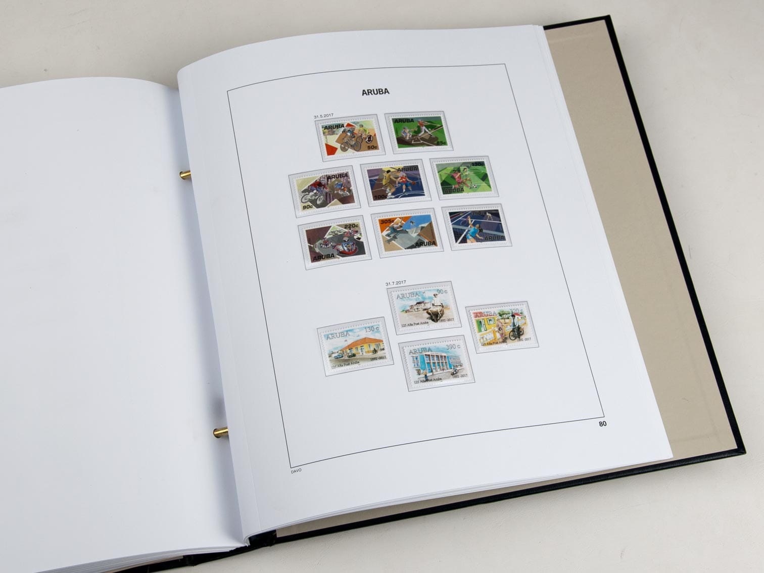 Les suppléments avec feuilles préimprimées de Davo, de type DeLuxe, sont fabriquées en carton particulièrement solide, sans bois et résistant au vieillissement d'un poids de 170 gr/m2. Ces feuilles de haute qualité sont de couleur Blanc et sont pourvues de bandes à pochettes transparentes sans acide ni plastifiant protègent vos timbres, carnets de timbres, feuillets, etc. de manière optimale contre les influences extérieures, sans gêner la vue sur votre collection.