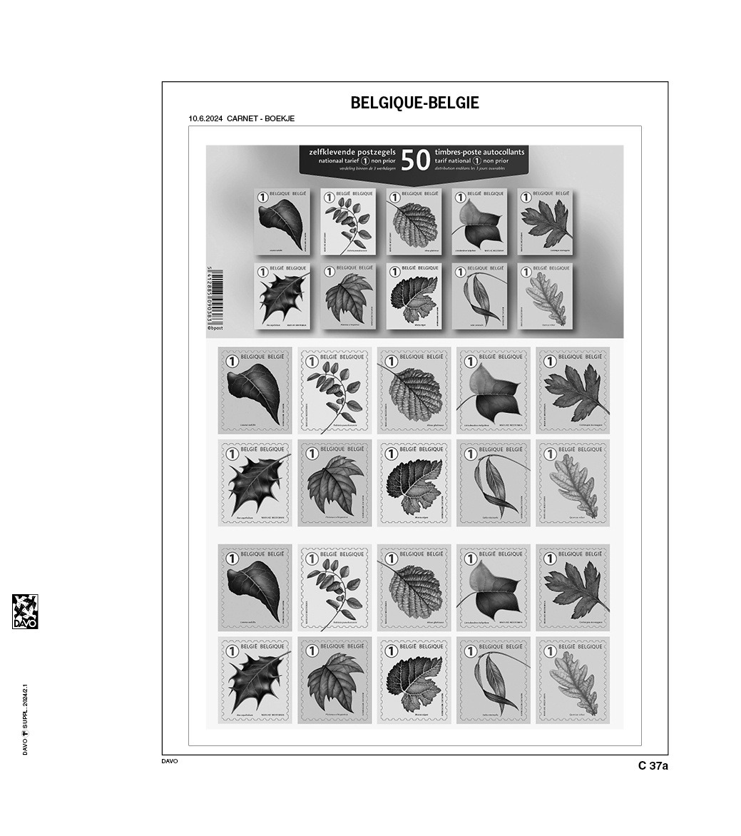 Les suppléments avec feuilles préimprimées de Davo, de type DeLuxe, sont fabriquées en carton particulièrement solide, sans bois et résistant au vieillissement d'un poids de 170 gr/m2. Ces feuilles de haute qualité sont de couleur Blanc et sont pourvues de bandes à pochettes transparentes sans acide ni plastifiant protègent vos timbres, carnets de timbres, feuillets, etc. de manière optimale contre les influences extérieures, sans gêner la vue sur votre collection.