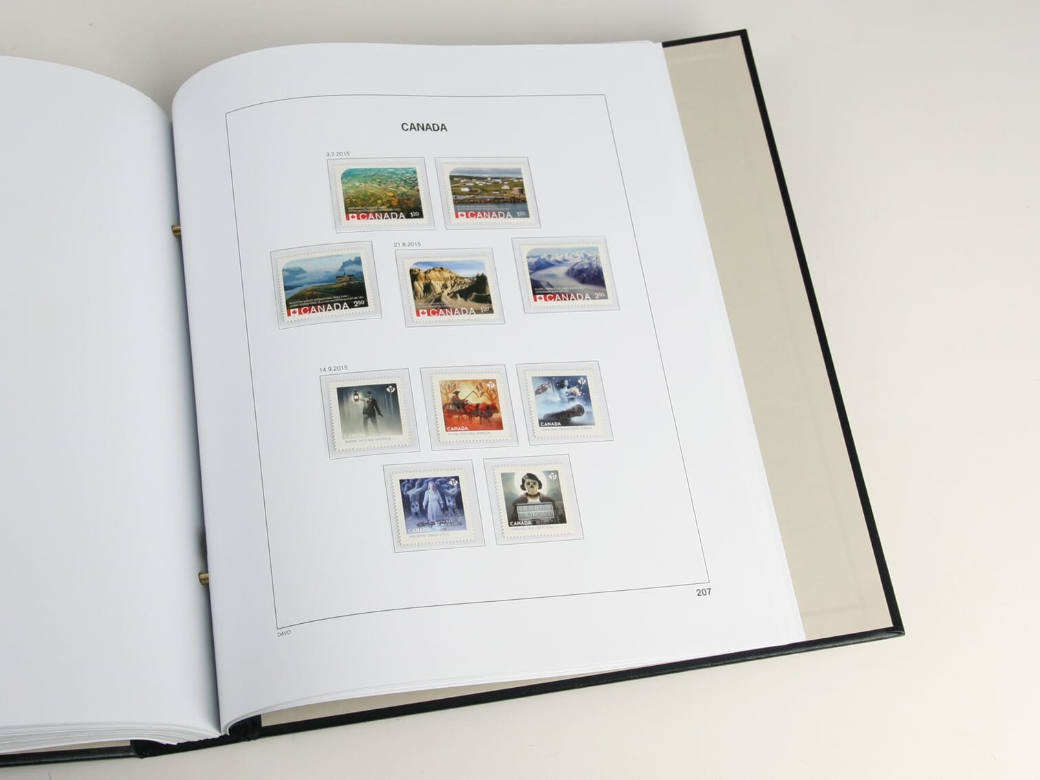 Chaque année paraît le supplément Canada, qui contient des feuilles de papier extra lourd (170 grs.) avec des bandes à pinces sans plastifiant.