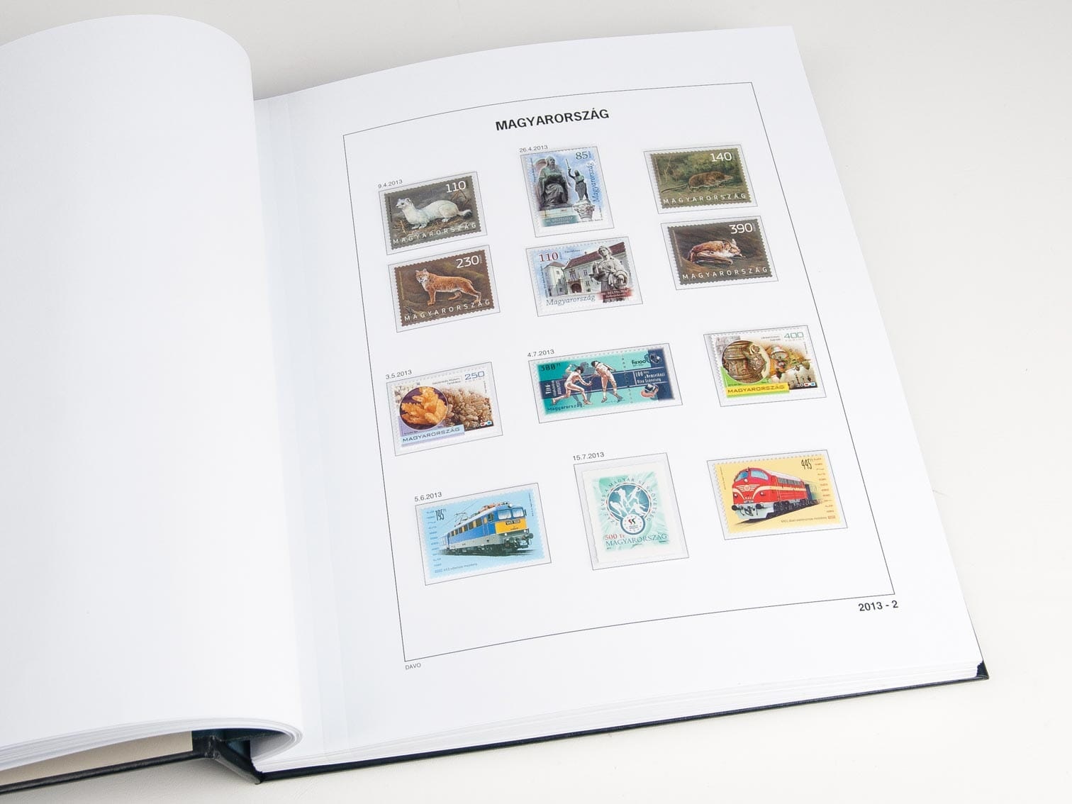 Chaque année paraît le supplément Hongrie, qui contient des feuilles de papier extra lourd (170 grs.) avec des bandes à pinces sans plastifiant.