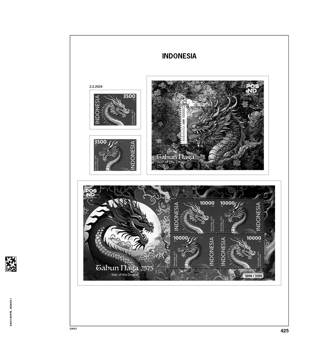 Les suppléments avec feuilles préimprimées de Davo, de type DeLuxe, sont fabriquées en carton particulièrement solide, sans bois et résistant au vieillissement d'un poids de 170 gr/m2. Ces feuilles de haute qualité sont de couleur Blanc et sont pourvues de bandes à pochettes transparentes sans acide ni plastifiant protègent vos timbres, carnets de timbres, feuillets, etc. de manière optimale contre les influences extérieures, sans gêner la vue sur votre collection.