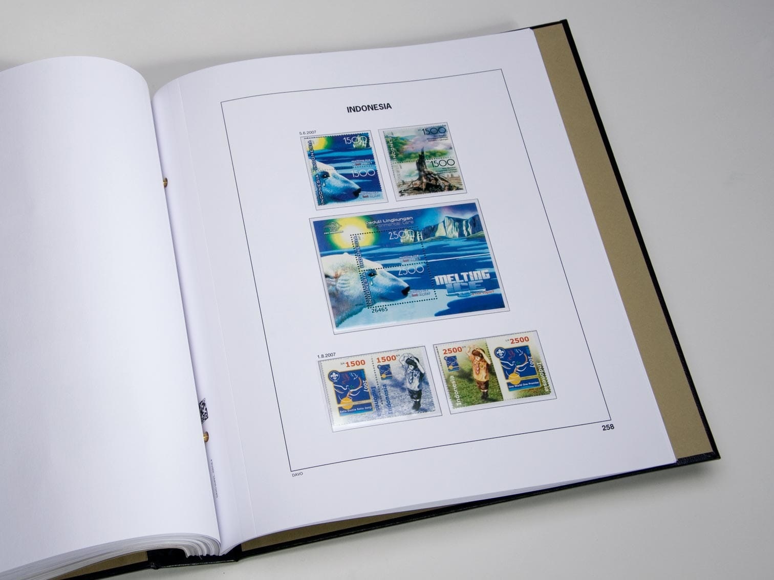 Avec un format de 275 x 310 mm et une perforation 2 Trous ces feuilles préimprimées s'adaptent parfaitement aux albums correspondants. Chaque feuille est pourvue de lignes de bordure noires et mage(s) en Noir sur des feuilles de couleur Blanc, par exemple des timbres, des feuillets, des carnets de timbres, etc. qui appartiennent à cette feuille préimprimée de l'album. Vous obtenez ainsi en un coup d'œil un aperçu clair de ce que vous possédez déjà et de ce qui vous manque encore. Vous gardez ainsi votre collection claire et à jour, classée par année ou par période.