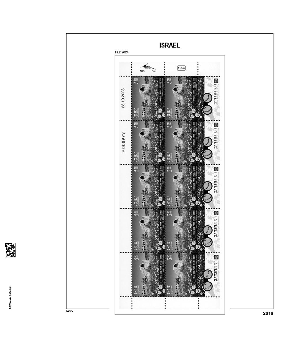 Numéros de page: 281a-f, 282a, 283a-d, C28b, 2024-Labels 1-6, PS1 Image(s) imprimée(s) en Noir sur des feuilles de couleur Blanc