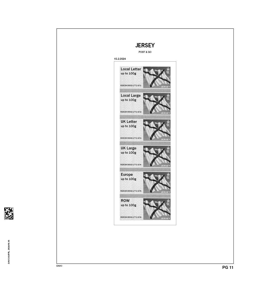Découvrez dès maintenant la vaste gamme d'albums et de feuilles de Davo. Outre l'offre de Jersey vous trouverez également chez nous une large gamme de feuilles préimprimées, de suppléments et d'albums d'autres pays, éventuellement pourvus du drapeau national ou des armoiries nationales. Tous ces articles sont classés par pays dans la rubrique Aperçu des pays dans notre boutique en ligne. Nous avons souvent en stock des articles légèrement utilisés, mais en bon état.