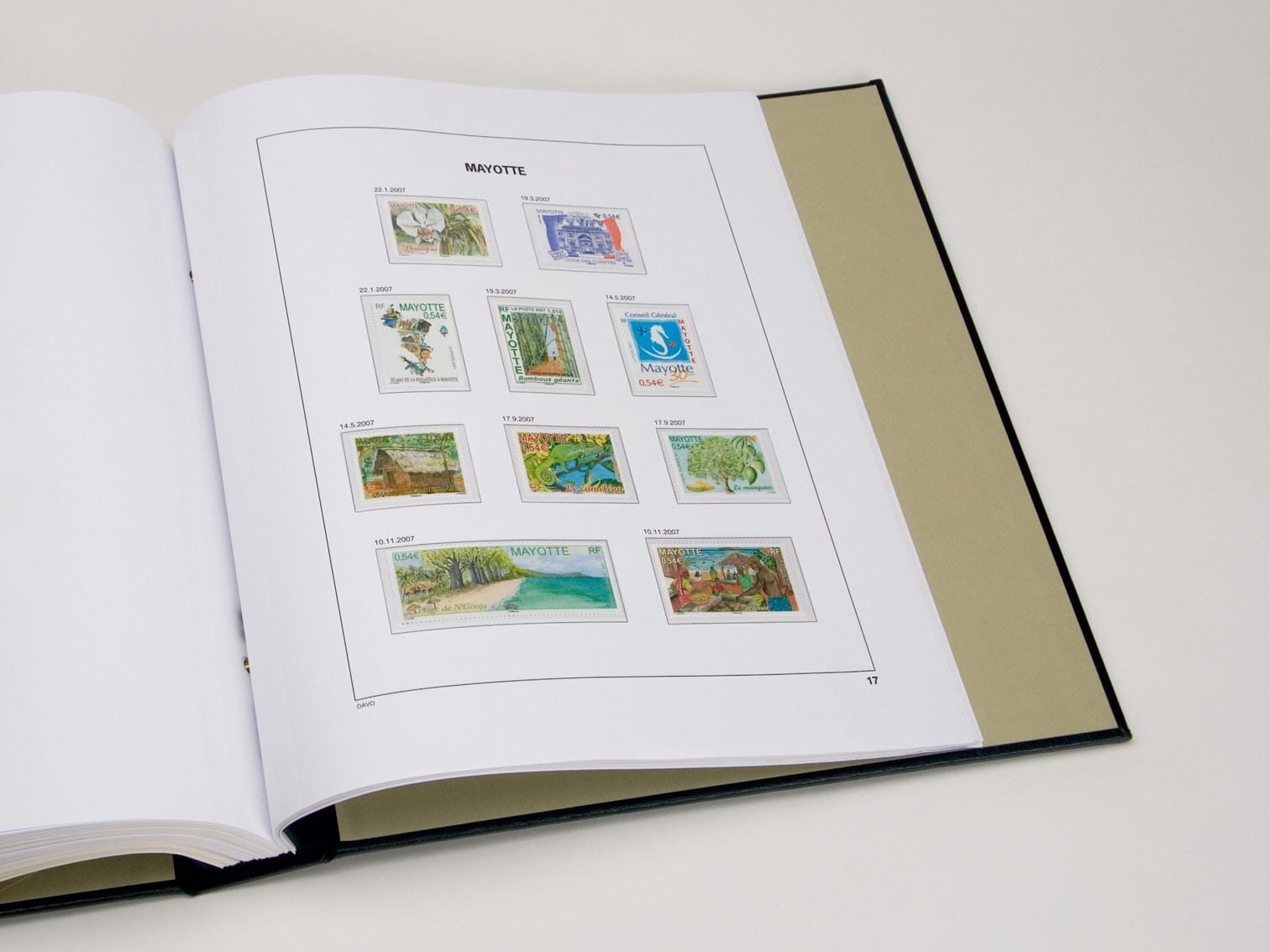 Les suppléments avec feuilles préimprimées de Davo, de type DeLuxe, sont fabriquées en carton particulièrement solide, sans bois et résistant au vieillissement d'un poids de 170 gr/m2. Ces feuilles de haute qualité sont de couleur Blanc et sont pourvues de bandes à pochettes transparentes sans acide ni plastifiant protègent vos timbres, carnets de timbres, feuillets, etc. de manière optimale contre les influences extérieures, sans gêner la vue sur votre collection.
