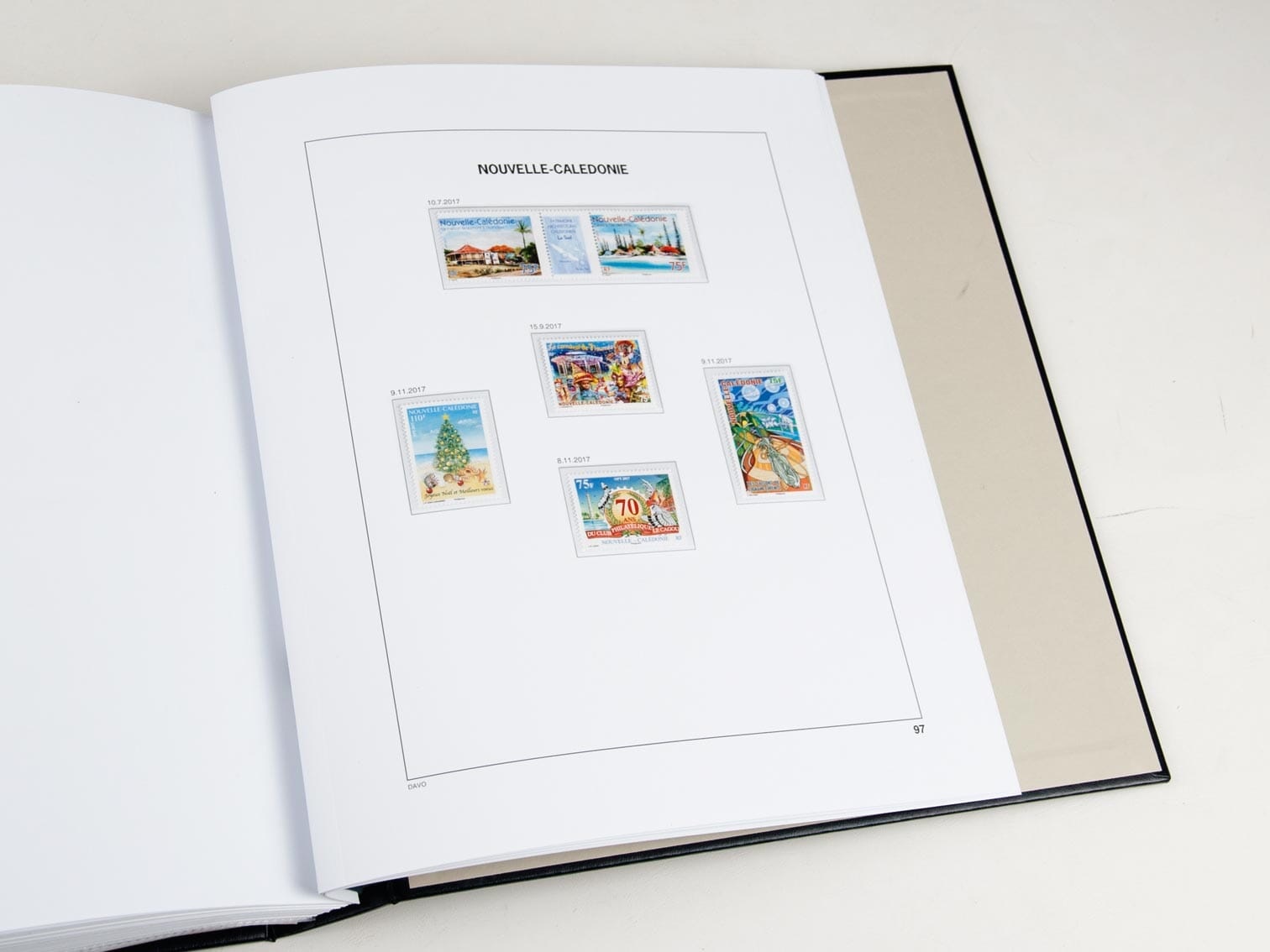 Les suppléments avec feuilles préimprimées de Davo, de type DeLuxe, sont fabriquées en carton particulièrement solide, sans bois et résistant au vieillissement d'un poids de 170 gr/m2. Ces feuilles de haute qualité sont de couleur Blanc et sont pourvues de bandes à pochettes transparentes sans acide ni plastifiant protègent vos timbres, carnets de timbres, feuillets, etc. de manière optimale contre les influences extérieures, sans gêner la vue sur votre collection.