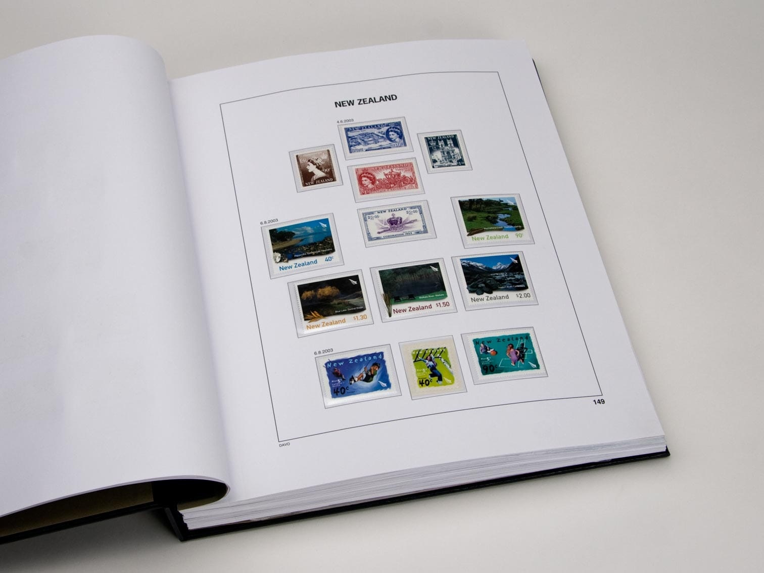 Chaque année paraît le supplément Nouvelle-Zélande, qui contient des feuilles de papier extra lourd (170 grs.) avec des bandes à pinces sans plastifiant.