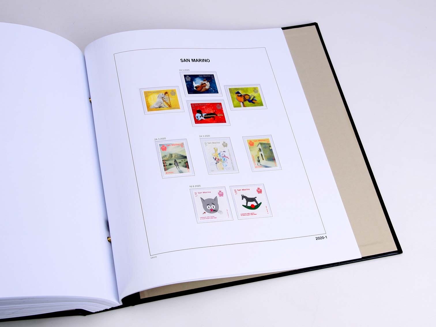Chaque année paraît le supplément Saint-Marin, qui contient des feuilles de papier extra lourd (170 grs.) avec des bandes à pinces sans plastifiant.