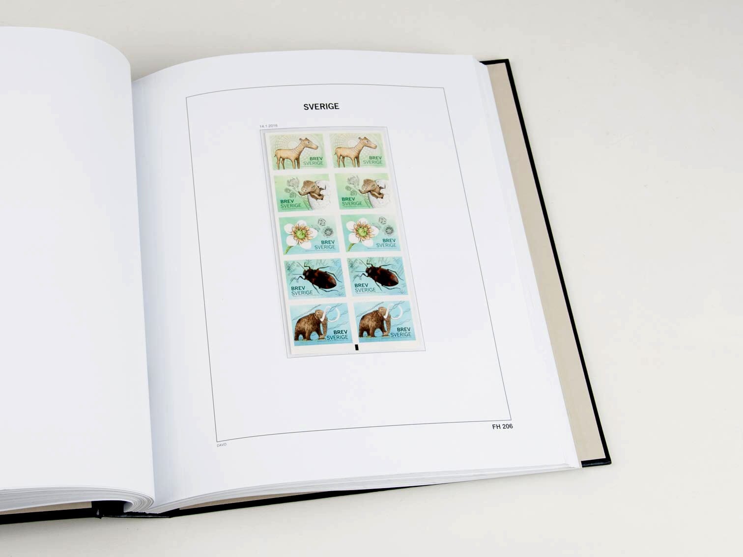 Les suppléments avec feuilles préimprimées de Davo, de type DeLuxe, sont fabriquées en carton particulièrement solide, sans bois et résistant au vieillissement d'un poids de 170 gr/m2. Ces feuilles de haute qualité sont de couleur Blanc et sont pourvues de bandes à pochettes transparentes sans acide ni plastifiant protègent vos timbres, carnets de timbres, feuillets, etc. de manière optimale contre les influences extérieures, sans gêner la vue sur votre collection.