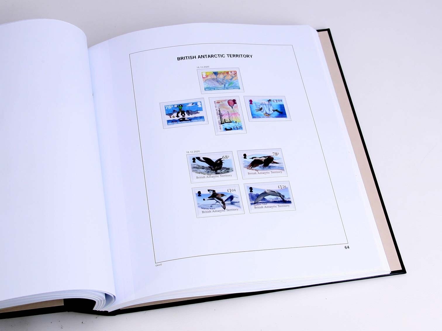 Les suppléments avec feuilles préimprimées de Davo, de type DeLuxe, sont fabriquées en carton particulièrement solide, sans bois et résistant au vieillissement d'un poids de 170 gr/m2. Ces feuilles de haute qualité sont de couleur Blanc et sont pourvues de bandes à pochettes transparentes sans acide ni plastifiant protègent vos timbres, carnets de timbres, feuillets, etc. de manière optimale contre les influences extérieures, sans gêner la vue sur votre collection.