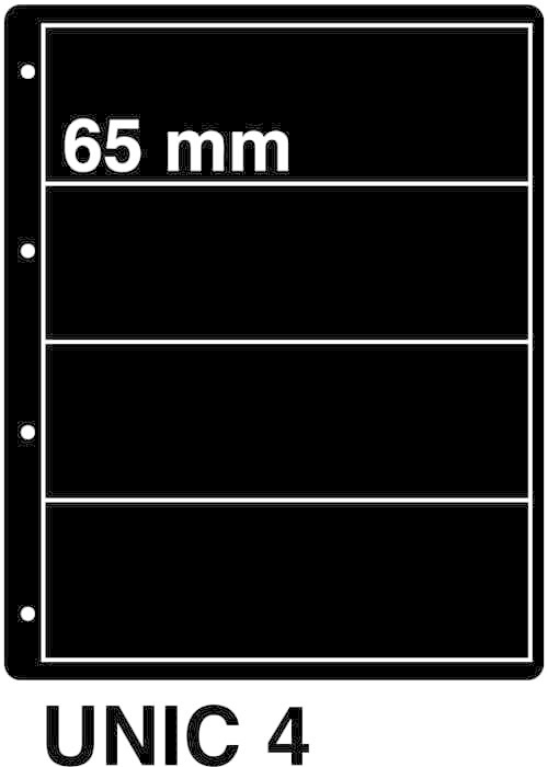 Ces Feuilles de pochettes de type Unic en couleur Noir, sont équipées de pochette(s) transparente(s) au recto pour accueillir votre collection et présenter son recto.