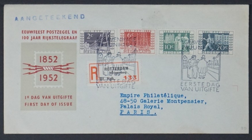 Les enveloppes Premier Jour néerlandaises (FDC) sont des émissions postales officielles sur lesquelles les timbres correspondants sont oblitérés le jour de leur émission. En philatélie, les FDC sont appréciées pour leur présentation soignée, leur contexte historique et leur lien direct avec le moment officiel de mise en circulation d’un timbre.