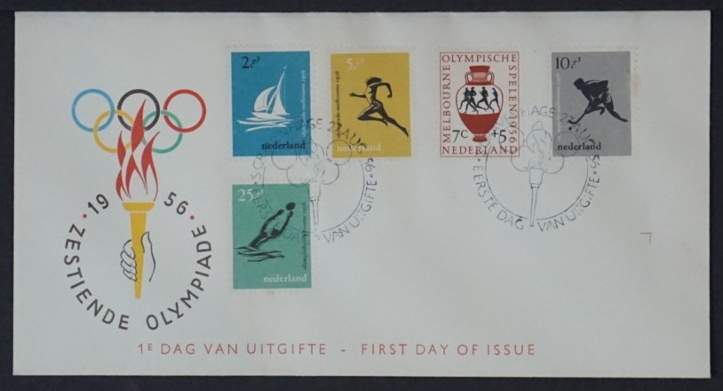Néerlandais Les enveloppes premier jour (FDC) associent un timbre-poste à une oblitération officielle du premier jour sur une enveloppe assortie. Elles marquent le moment d’émission et constituent un objet de collection reconnaissable en philatélie moderne, la date et le lieu d’oblitération remplissant une fonction documentaire précise.