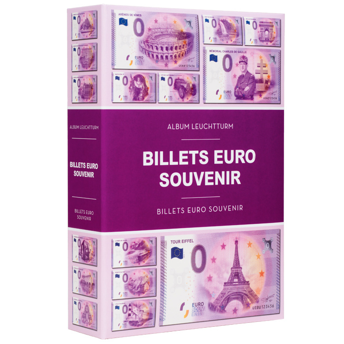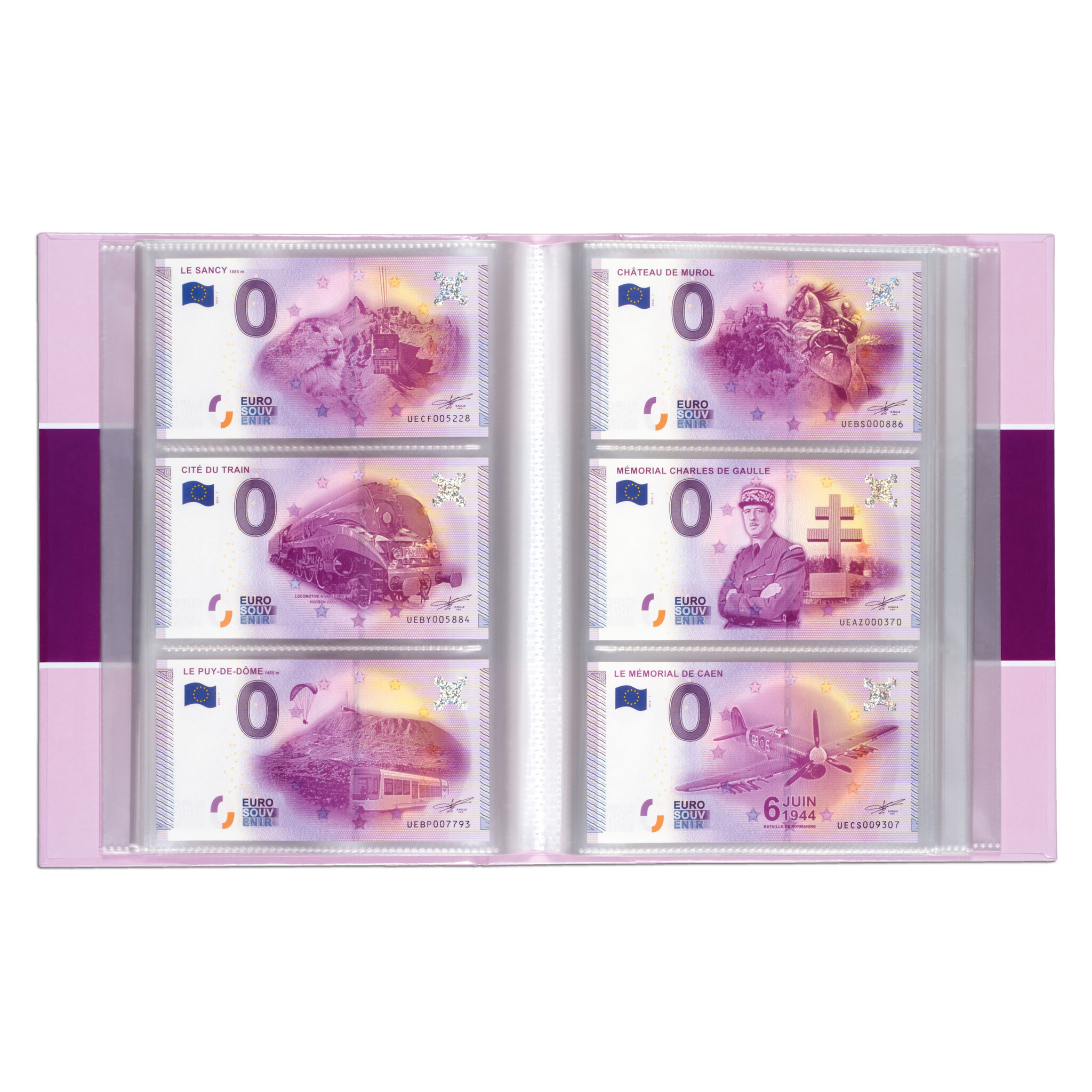 Un album pratique, imprimé en couleurs, pour conserver votre collection de 0-Euro souvenir billets de banque. Cet album est livré avec 70 feuilles fixes pouvant contenir 420 billets.