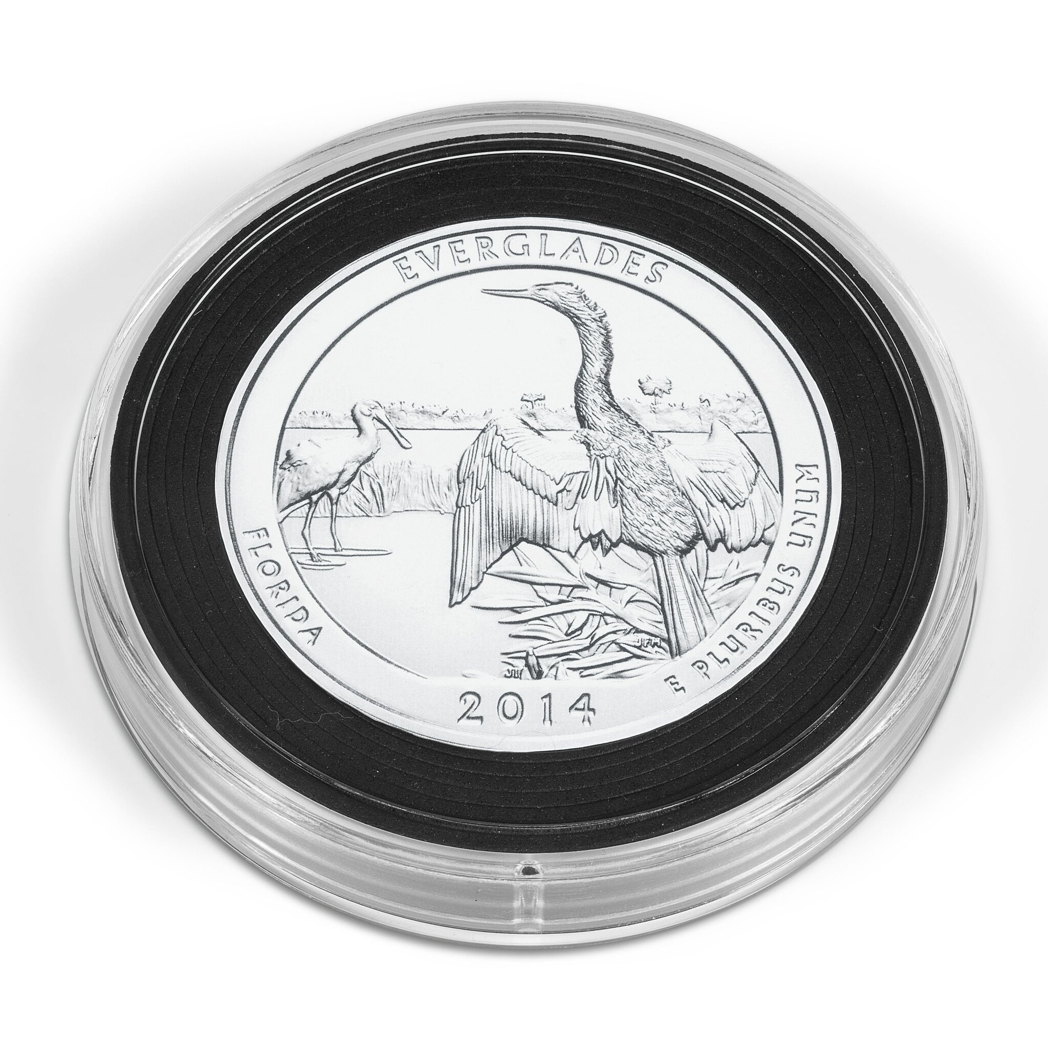 La pièce est entièrement protégée contre la poussière, l’air, l’humidité due au contact des mains et les légères contraintes mécaniques. En même temps, la finition transparente permet une excellente visibilité de la pièce, ce qui rend ces capsules adaptées aussi bien au rangement sécurisé qu’à une présentation soignée.