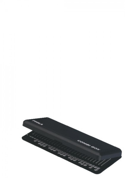 La Phila Combibox est une boîte en plastique très solide qui permet de déterminer la perforation des timbres et d'effectuer un test de filigrane. Déplacez le timbre sur les différentes tailles de manière à ce que la perforation tombe sur les picots. C'est rapide, facile et très précis !