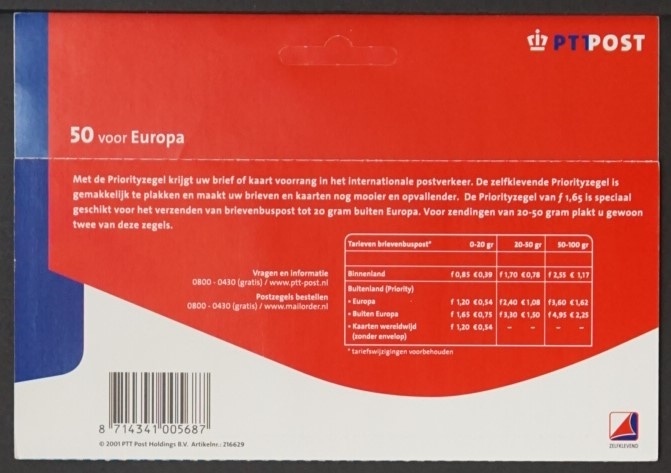 NVPH - 1992.a, Mailer (Pays-Bas), Émis de l'année: 2001, Neuf sans Charnière (MNH) - PTT Post