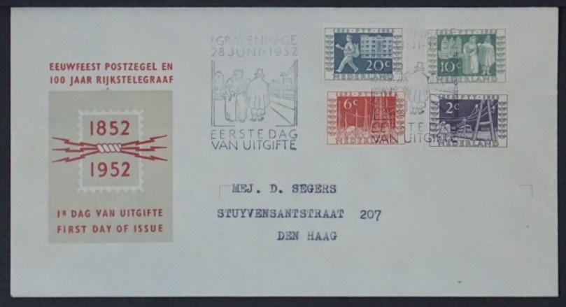 NVPH - , Couverture Premier Jour (Pays-Bas), Émis de l'année: 1952, Adressée (A) - Rabat ouvert (OF)