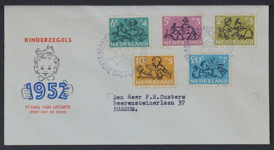 NVPH - , Couverture Premier Jour (Pays-Bas), Émis de l'année: 1952, Adressée (A) - Rabat ouvert (OF)