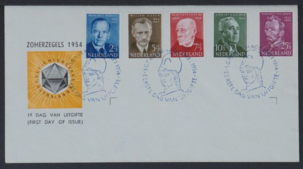 Néerlandais Les enveloppes premier jour (FDC) associent un timbre-poste à une oblitération officielle du premier jour sur une enveloppe assortie. Elles marquent le moment d’émission et constituent un objet de collection reconnaissable en philatélie moderne, la date et le lieu d’oblitération remplissant une fonction documentaire précise.