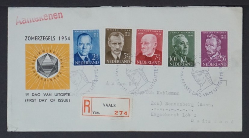NVPH - , Couverture Premier Jour (Pays-Bas), Émis de l'année: 1954, Adressée (A) - Bord supérieur découpée (TO)