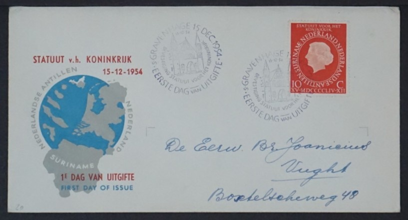 NVPH - E 20, Couverture Premier Jour, Émis de l'année: 1954, Adressée (A)