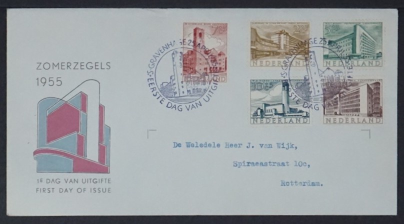 NVPH - , Couverture Premier Jour (Pays-Bas), Émis de l'année: 1955, Adressée (A) - Rabat ouvert (OF)
