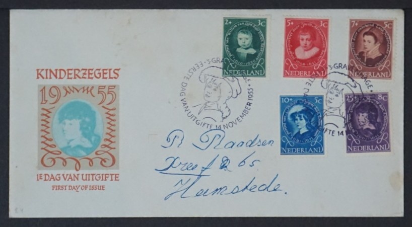 Néerlandais Les enveloppes premier jour (FDC) associent un timbre-poste à une oblitération officielle du premier jour sur une enveloppe assortie. Elles marquent le moment d’émission et constituent un objet de collection reconnaissable en philatélie moderne, la date et le lieu d’oblitération remplissant une fonction documentaire précise.