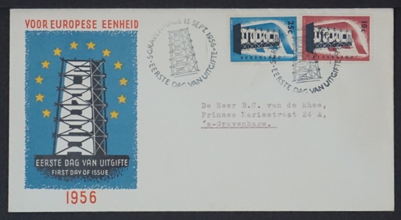 NVPH - , Couverture Premier Jour (Pays-Bas), Émis de l'année: 1956, Adressée (A) - Rabat fermé (CF)
