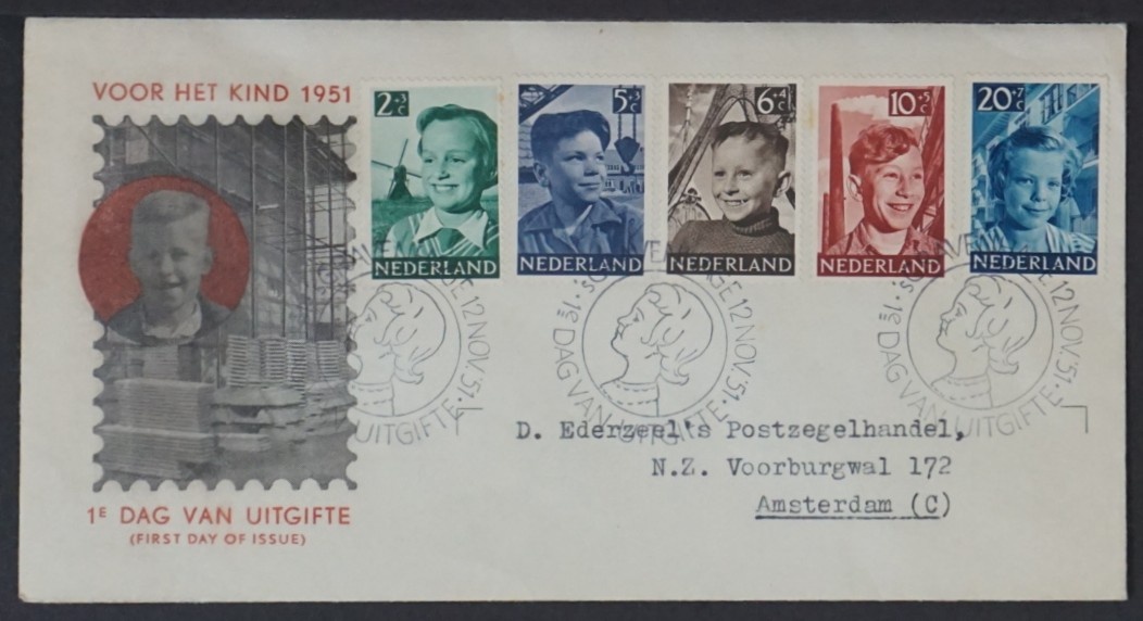 NVPH - , Couverture Premier Jour (Pays-Bas), Émis de l'année: 1951, Adressée (A) - Rabat fermé (CF)