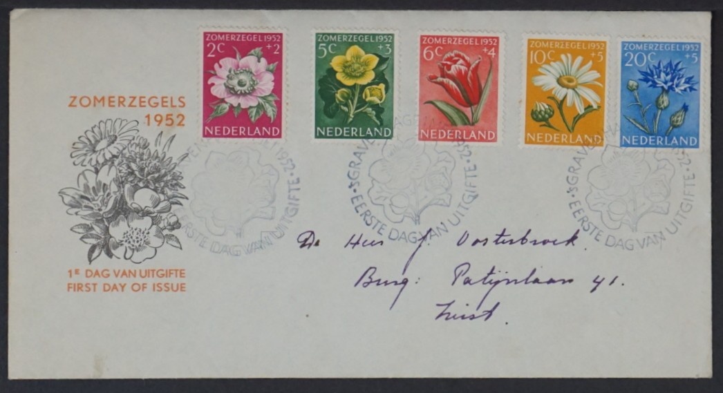NVPH - , Couverture Premier Jour (Pays-Bas), Émis de l'année: 1952, Adressée (A) - Rabat fermé (CF)