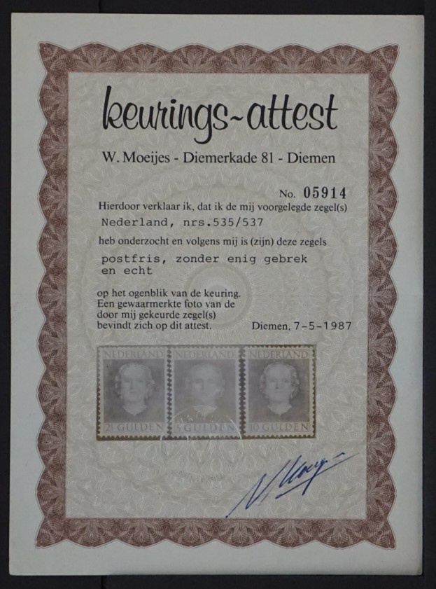 NVPH - 534-537, Timbres (Pays-Bas), Émis de l'année: 1949, Neuf sans Charnière (MNH) - Certificat d’expertise