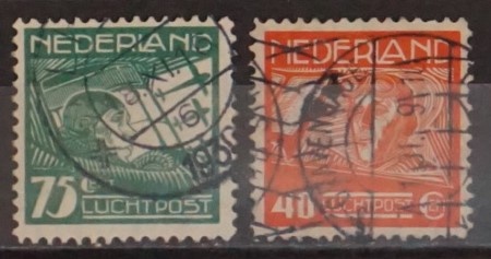 Originaux néerlandais timbres de poste aérienne utilisés pour envoi par avion selon tarif aérien spécifique dans les réseaux postaux internationaux
