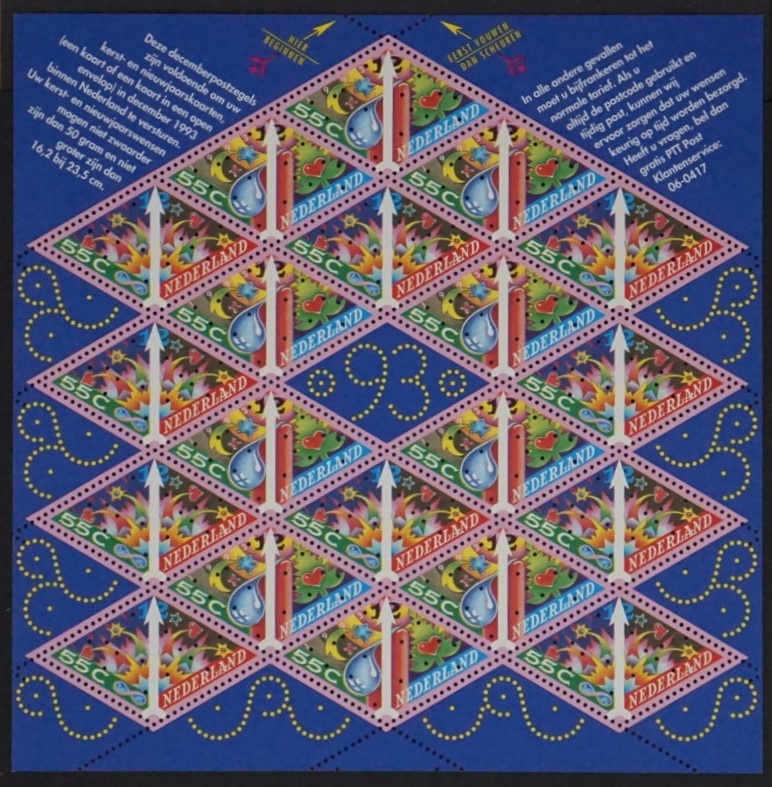 Feuillet original néerlandais conçu comme une unité compacte au sein des émissions officielles, réunissant plusieurs timbres identiques