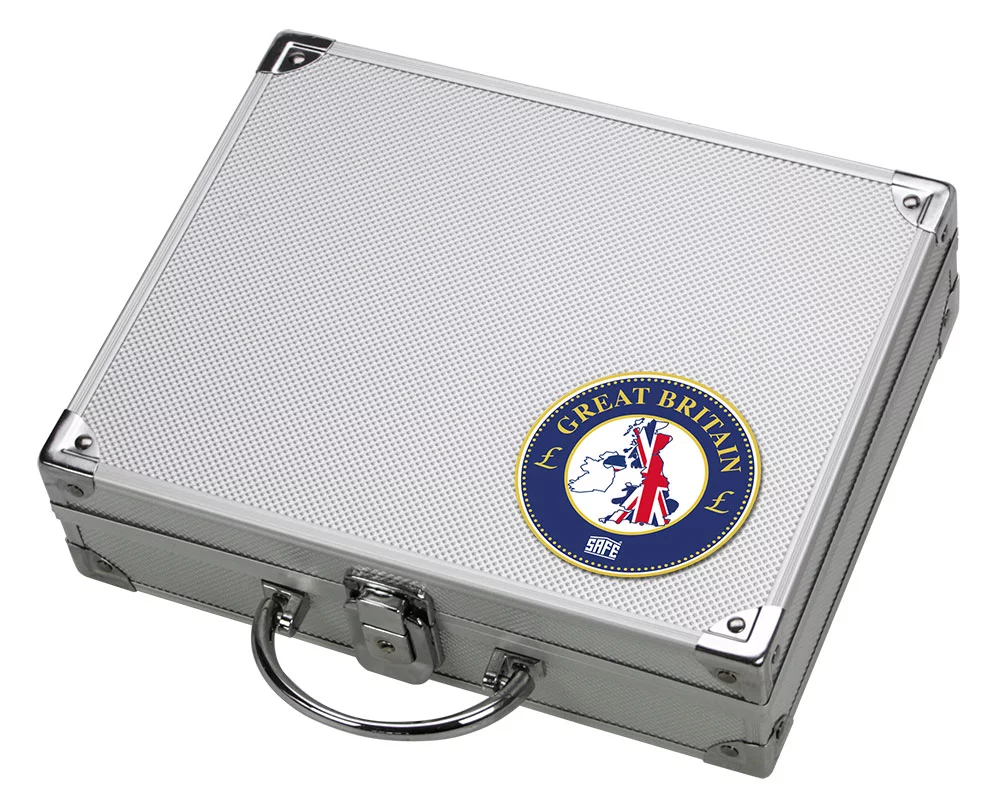 Coffret numismatique en aluminium pour toutes vos pièces de monnaie, avec emblème de la Grande-Bretagne.
