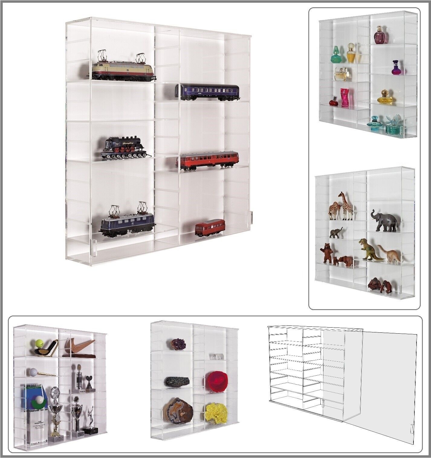 Les vitrines peuvent être fixées au mur individuellement ou en combinaison. Elles peuvent être placées sur des étagères murales, des armoires ou autres. Il n'y a pas non plus de limites aux objets que l'on peut collectionner ou présenter.