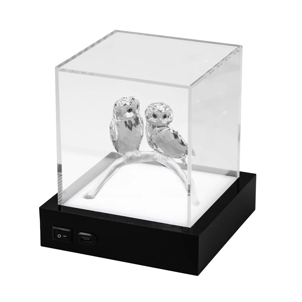 La partie supérieure du cube est fabriquée en acrylique robuste de 3 mm d’épaisseur, garantissant stabilité et finition haut de gamme. Le cube se place avec précision sur le socle noir et peut être alimenté par 2 piles AA ou via une connexion secteur avec adaptateur. Ce cube lumineux offre une présentation professionnelle et élégante pour tous vos objets de collection.