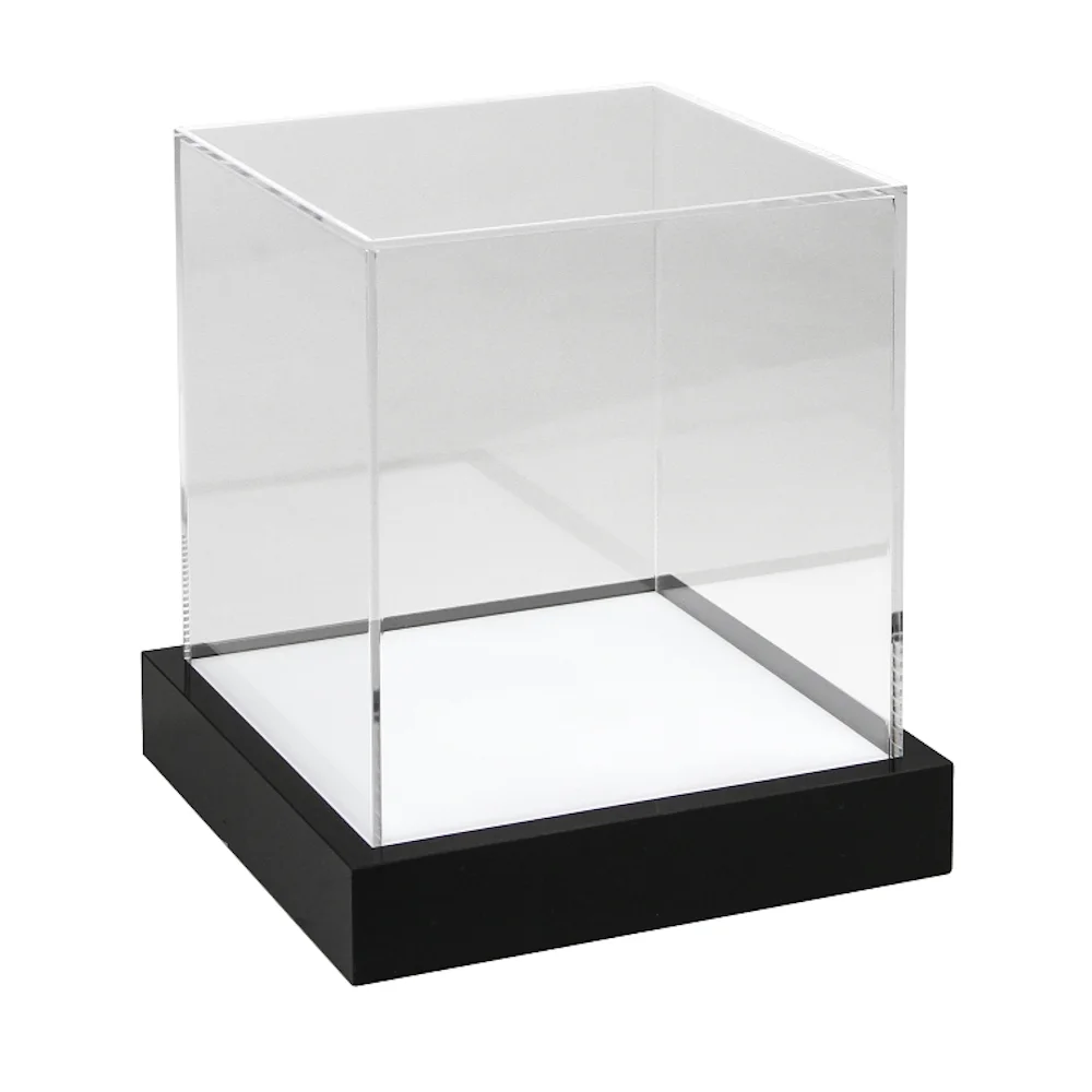 Le cube de présentation 150 mm est un cube en acrylique transparent de haute qualité, posé sur un socle noir élégant avec éclairage LED intégré à la base. Grâce à ses dimensions plus grandes de 150 × 150 × 150 mm, il est idéal pour présenter des objets de collection plus volumineux, des modèles ou des pièces particulières.