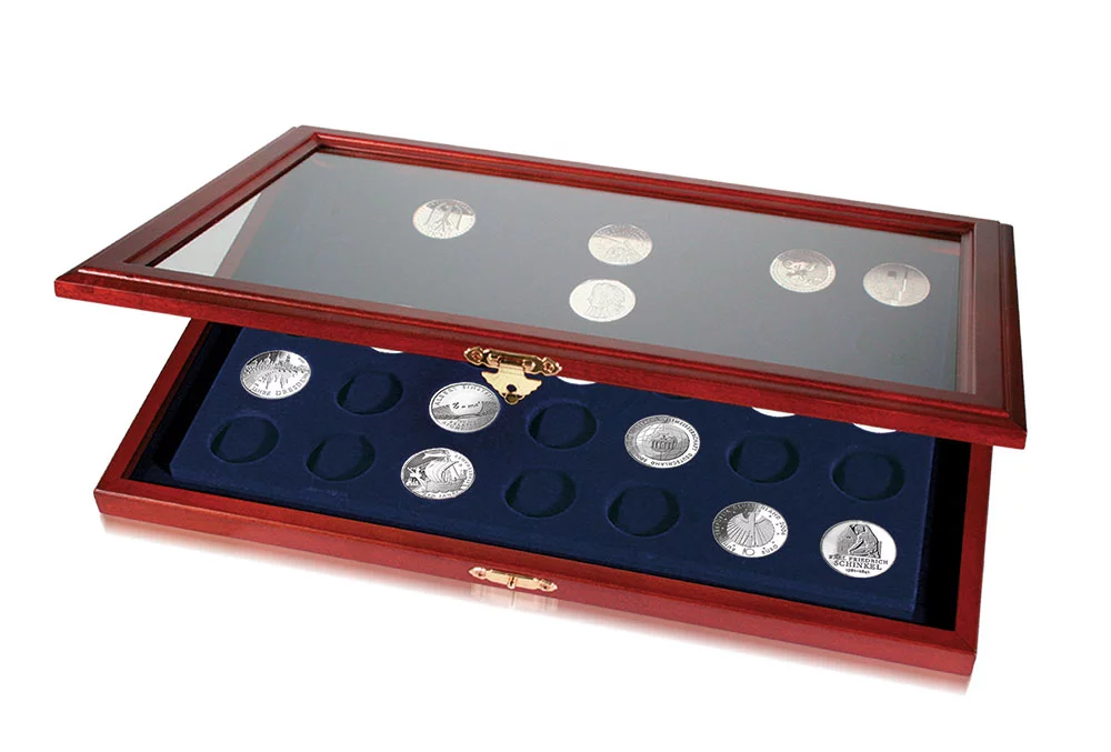 Vitrine pour pièces de monnaie, 17 x Ø 33mm.