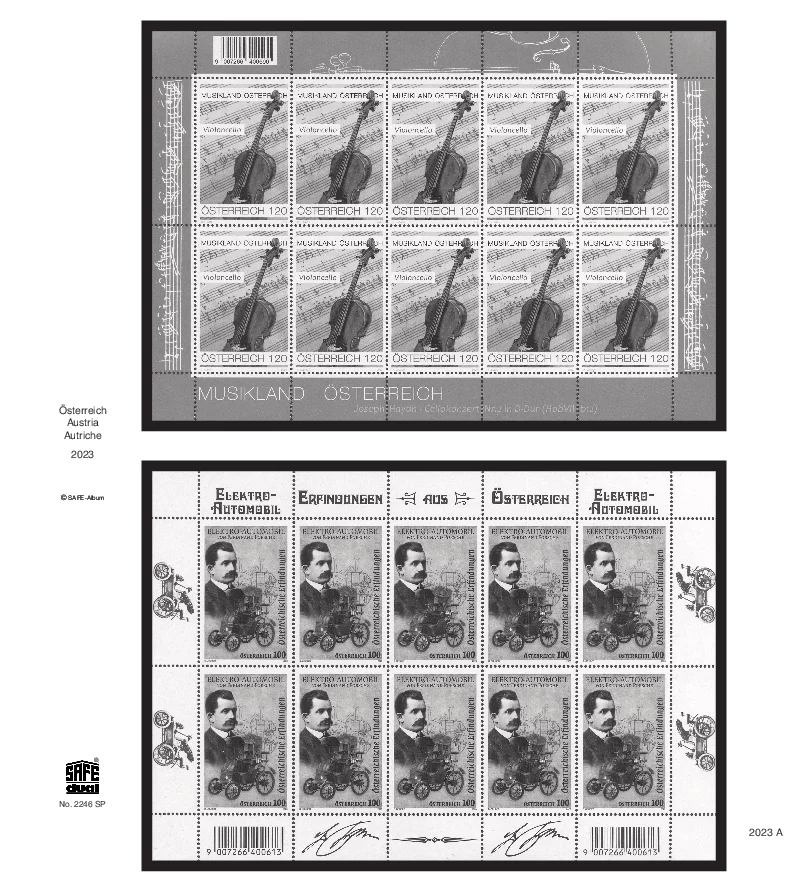Les suppléments avec feuilles préimprimées de Safe, de type Dual, sont fabriquées en carton particulièrement solide, sans bois et résistant au vieillissement d'un poids de 170 gr/m2. Ces feuilles de haute qualité sont de couleur Champagne et sont pourvues de bandes à pochettes transparentes sans acide ni plastifiant protègent vos timbres, carnets de timbres, feuillets, etc. de manière optimale contre les influences extérieures, sans gêner la vue sur votre collection.