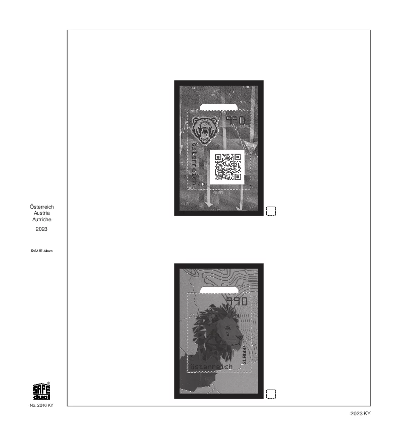 Les suppléments avec feuilles préimprimées de Safe, de type Dual, sont fabriquées en carton particulièrement solide, sans bois et résistant au vieillissement d'un poids de 170 gr/m2. Ces feuilles de haute qualité sont de couleur Champagne et sont pourvues de bandes à pochettes transparentes sans acide ni plastifiant protègent vos timbres, carnets de timbres, feuillets, etc. de manière optimale contre les influences extérieures, sans gêner la vue sur votre collection.