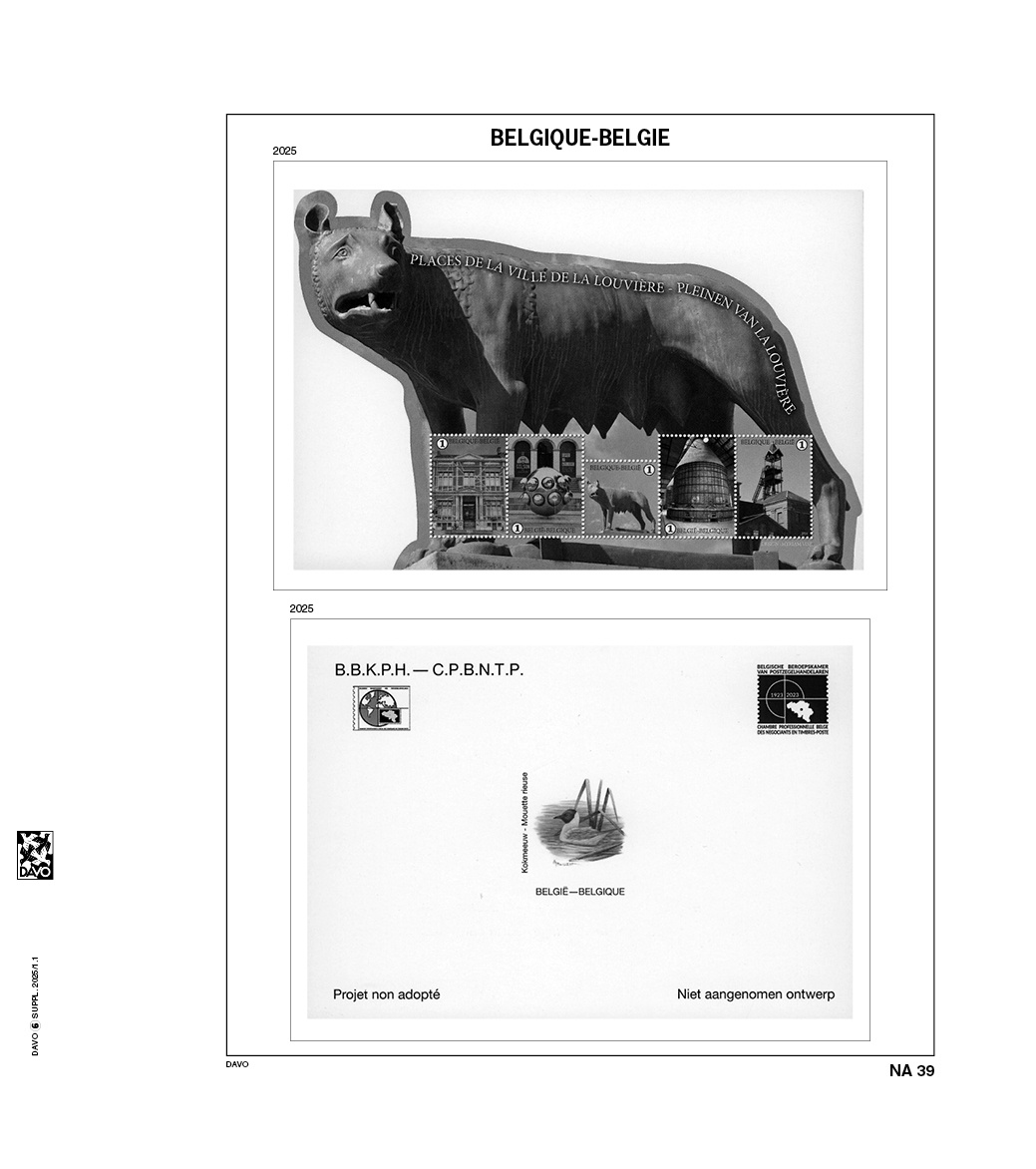 Les suppléments avec feuilles préimprimées de Davo, de type DeLuxe, sont fabriquées en carton particulièrement solide, sans bois et résistant au vieillissement d'un poids de 170 gr/m2. Ces feuilles de haute qualité sont de couleur Blanc et sont pourvues de bandes à pochettes transparentes sans acide ni plastifiant protègent vos timbres, carnets de timbres, feuillets, etc. de manière optimale contre les influences extérieures, sans gêner la vue sur votre collection.