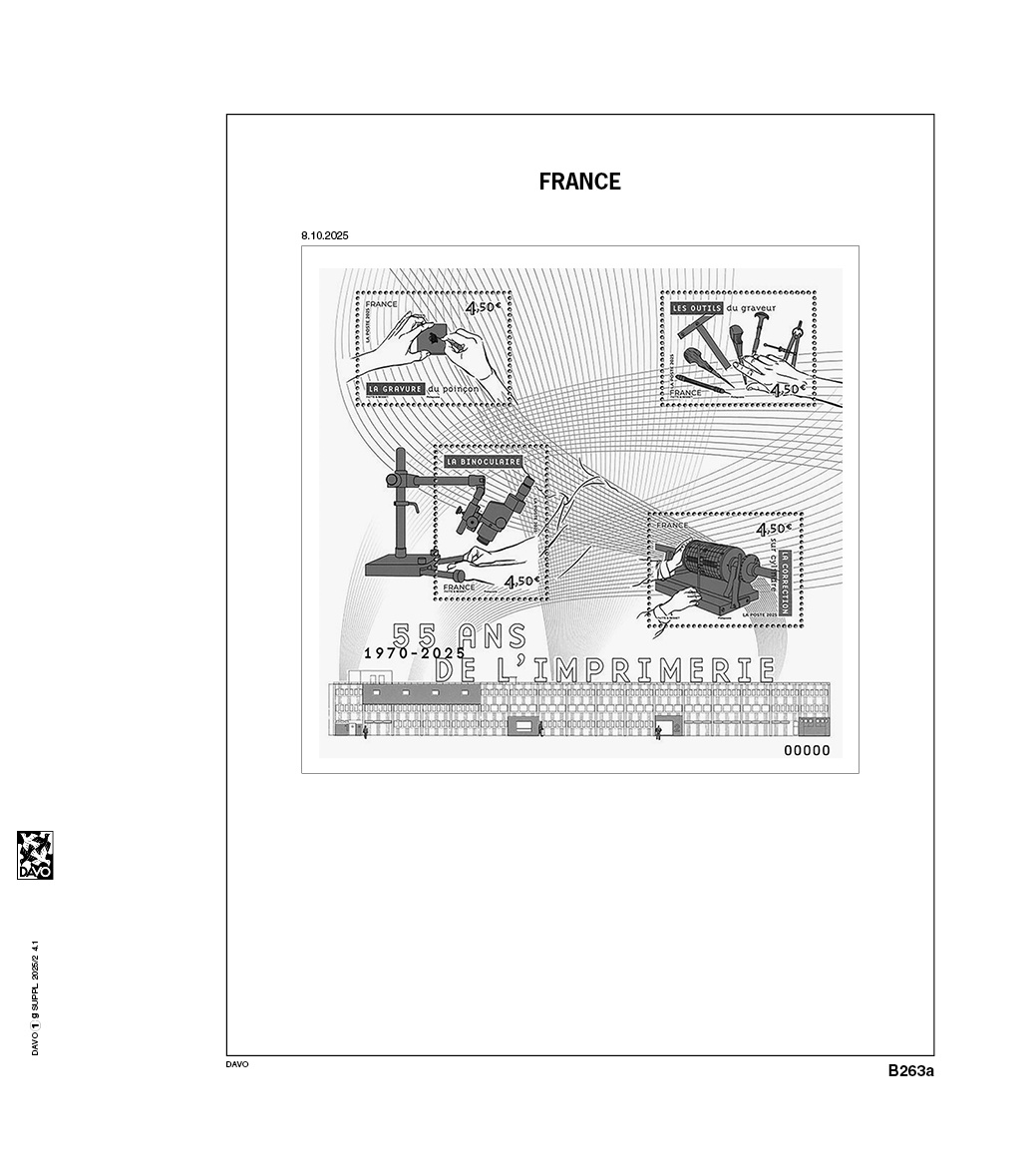 Découvrez dès maintenant la vaste gamme d'albums et de feuilles de Davo. Outre l'offre de France vous trouverez également chez nous une large gamme de feuilles préimprimées, de suppléments et d'albums d'autres pays, éventuellement pourvus du drapeau national ou des armoiries nationales. Tous ces articles sont classés par pays dans la rubrique Aperçu des pays dans notre boutique en ligne. Nous avons souvent en stock des articles légèrement utilisés, mais en bon état.