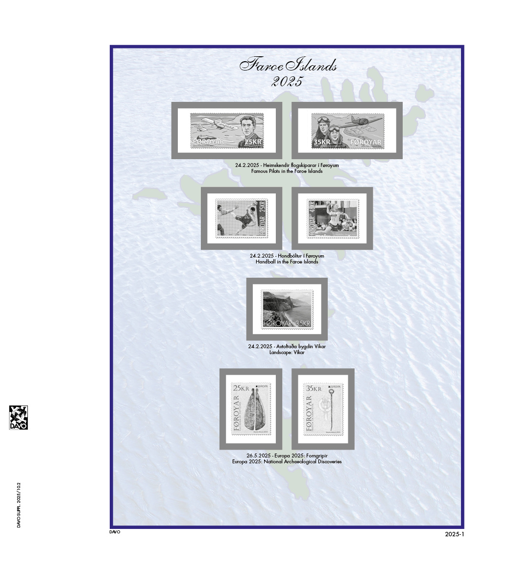 Découvrez dès maintenant la vaste gamme d'albums et de feuilles de Davo. Outre l'offre de Îles Féroé vous trouverez également chez nous une large gamme de feuilles préimprimées, de suppléments et d'albums d'autres pays, éventuellement pourvus du drapeau national ou des armoiries nationales. Tous ces articles sont classés par pays dans la rubrique Aperçu des pays dans notre boutique en ligne. Nous avons souvent en stock des articles légèrement utilisés, mais en bon état.