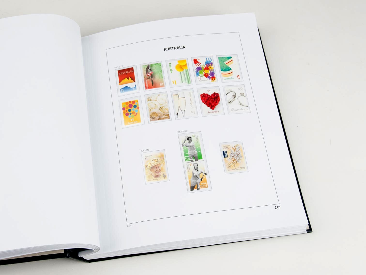 Op alle bladen zijn kaders aangegeven waar u de postzegels kunt onderbrengen, meestal met een afbeelding van de postzegel zelf. Op al deze kaders zijn transparante klemstrookjes aangebracht om uw postzegels veilig in onder te brengen.Het supplement Australië bevat het jaar 2016.