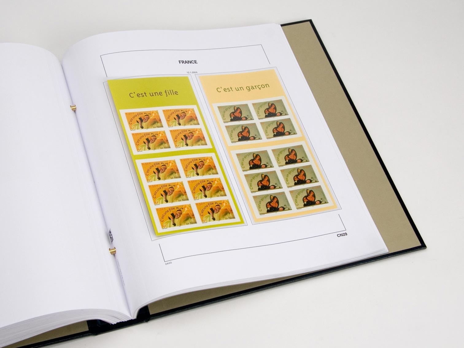 Met een formaat van 275 x 310 mm en een 2 Gats perforatie passen deze voordrukbladen perfect in de bijbehorende Davo albums, van het type DeLuxe, met 2 boekschroeven. Elk blad is voorzien van zwarte kaderlijnen en afbeelding(en) uitgevoerd in het Zwart op bladen in de kleur Wit, van bijv. postzegels, velletjes, postzegelboekjes enz. die thuishoren bij dit voorbedrukte album blad. Hierdoor krijgt u in één oogopslag een duidelijk overzicht van wat u al in uw bezit heeft en wat nog zou ontbreken. Zo houdt u uw verzameling overzichtelijk en up-to-date, ingedeeld per jaar of tijdvak.