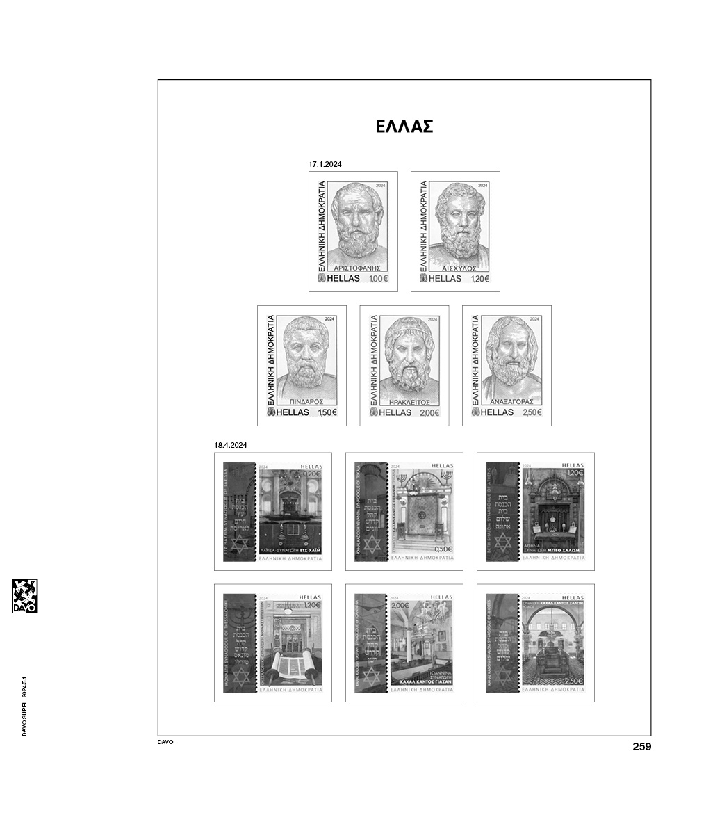 Elk jaar verschijnt het supplement Griekenland, deze bevat bladen van extra zwaar papier (170 grs.) en weekmaker vrije klemstrookjes.