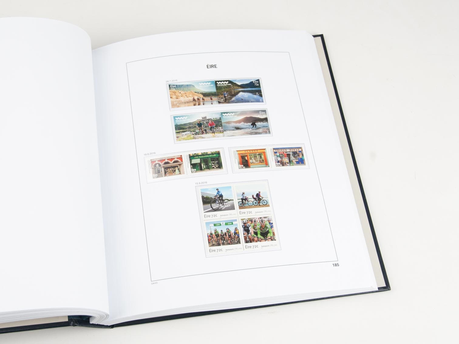 Op alle bladen zijn kaders aangegeven waar u de postzegels kunt onderbrengen, meestal met een afbeelding van de postzegel zelf. Op al deze kaders zijn transparante klemstrookjes aangebracht om uw postzegels veilig in onder te brengen.Het supplement Ierland bevat het jaar 2016.