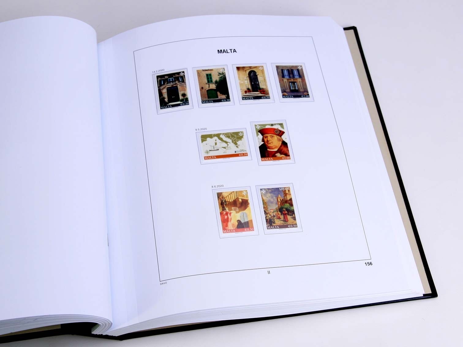 Op alle bladen zijn kaders aangegeven waar u de postzegels kunt onderbrengen, meestal met een afbeelding van de postzegel zelf. Op al deze kaders zijn transparante klemstrookjes aangebracht om uw postzegels veilig in onder te brengen.Het supplement Malta bevat het jaar 2020.